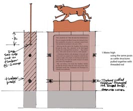 The sculptures, which will stand 4 metres high, will be made from laser-cut, steel with a rusty patina, and set atop 3 metre long red-gum posts.