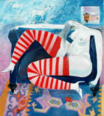above: Seated Nude [oil on canvas] above: Victim [oil and timber on canvas] above: Waiting for George [oil on canvas] above: Tropical Reef [oil on canvas]
